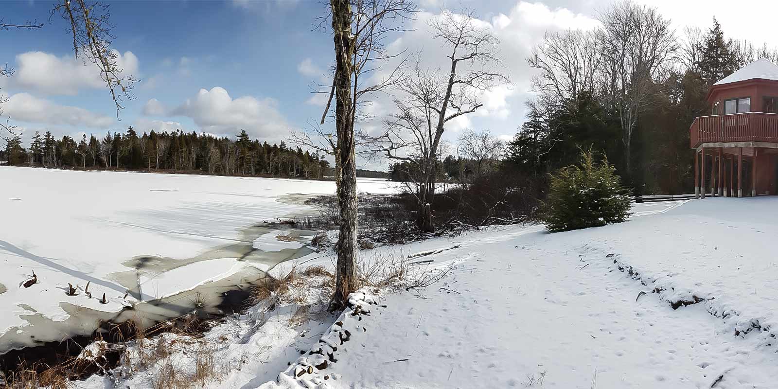 Das Haus ist knapp 2 Stunden vom Flughafen Halifax entfernt. Über Dartmouth nimmt man den Highway 103 nach Süden, vorbei an den Küstenstädtchen Chester und Lunenburg, bis nach Bridgewater. Von dort geht es über die NS-210 nach Greenfield und schließlich ca. 10 Minuten auf einer nicht asphaltierten Strasse durch den Wald zu dem Haus am wunderschönen See.